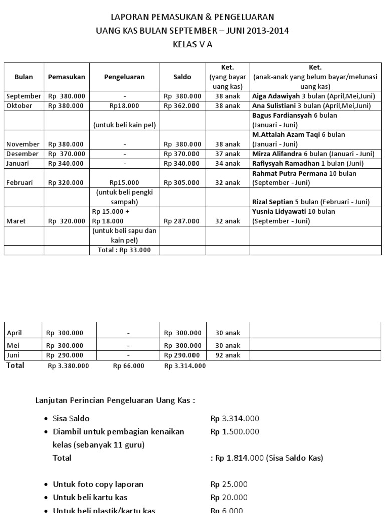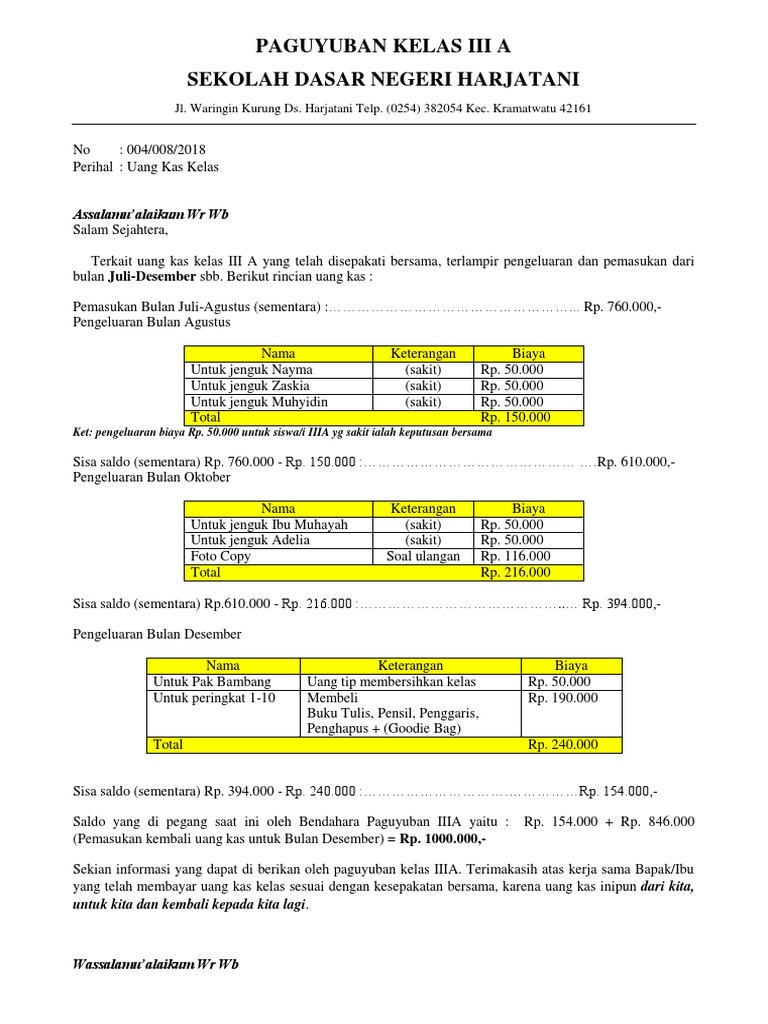 Contoh Laporan Uang Kas Kelas Seputar Laporan